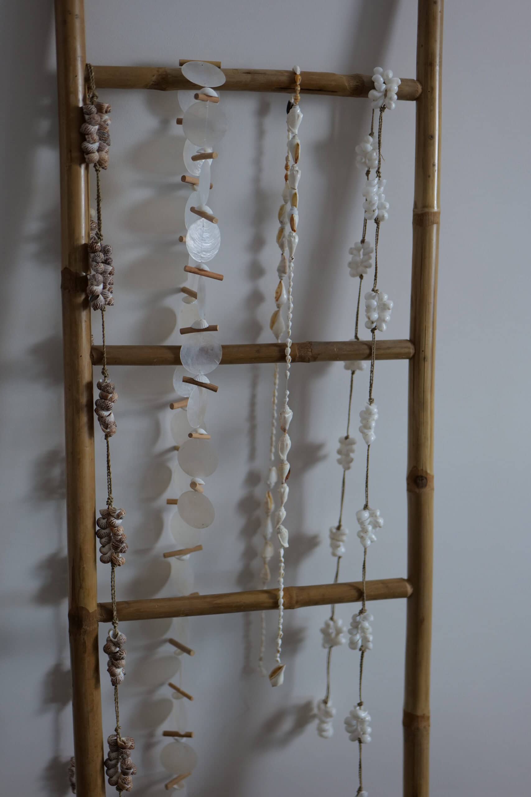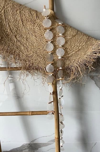 Mooie slinger van capiz schelpen; om op te hangen maar ook bij een schaal te leggen op tafel. Handgemaakt door locale families uit Bali