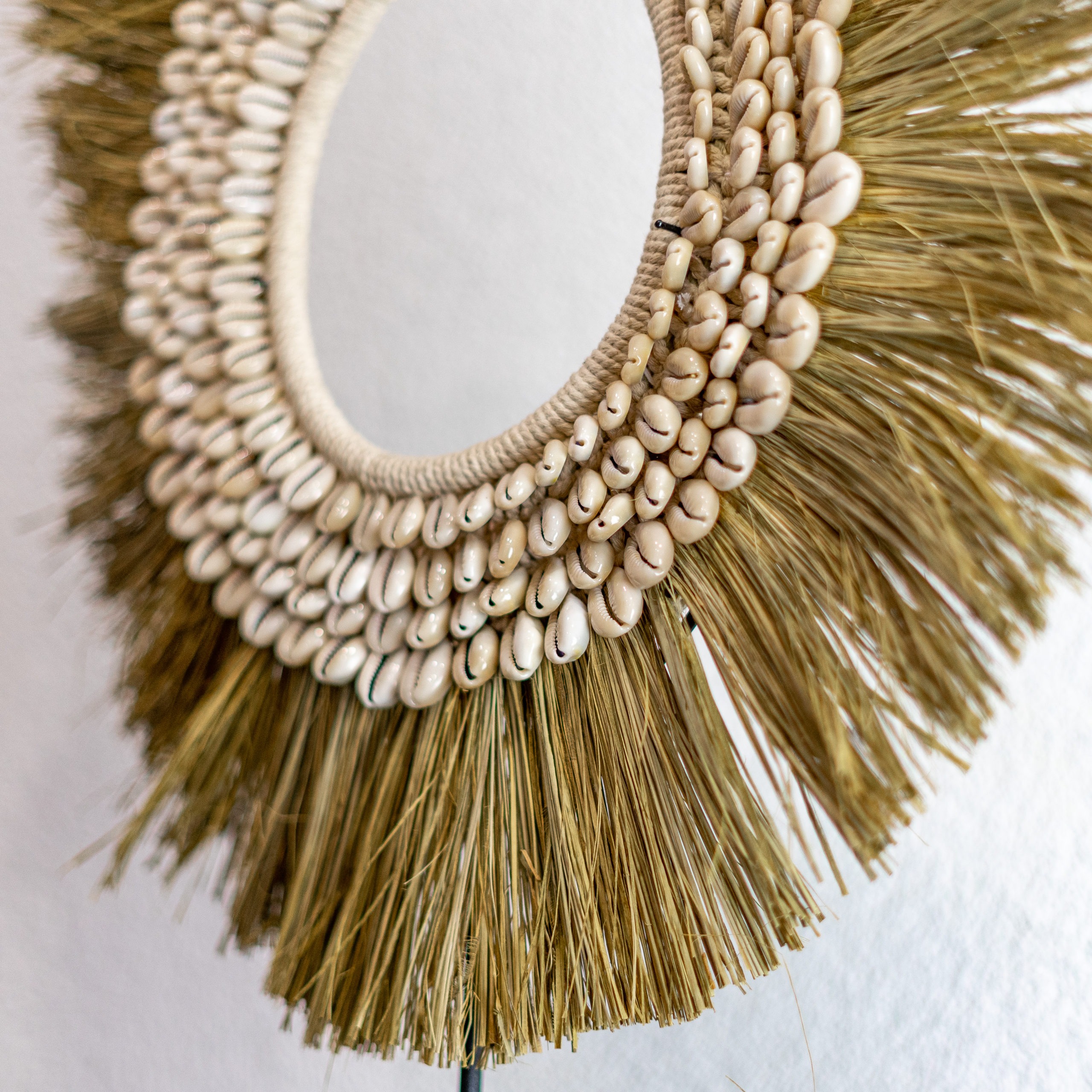Materiaal : Raffia en kaurischelpen.  Elk item is uniek. Wordt geleverd met standaard