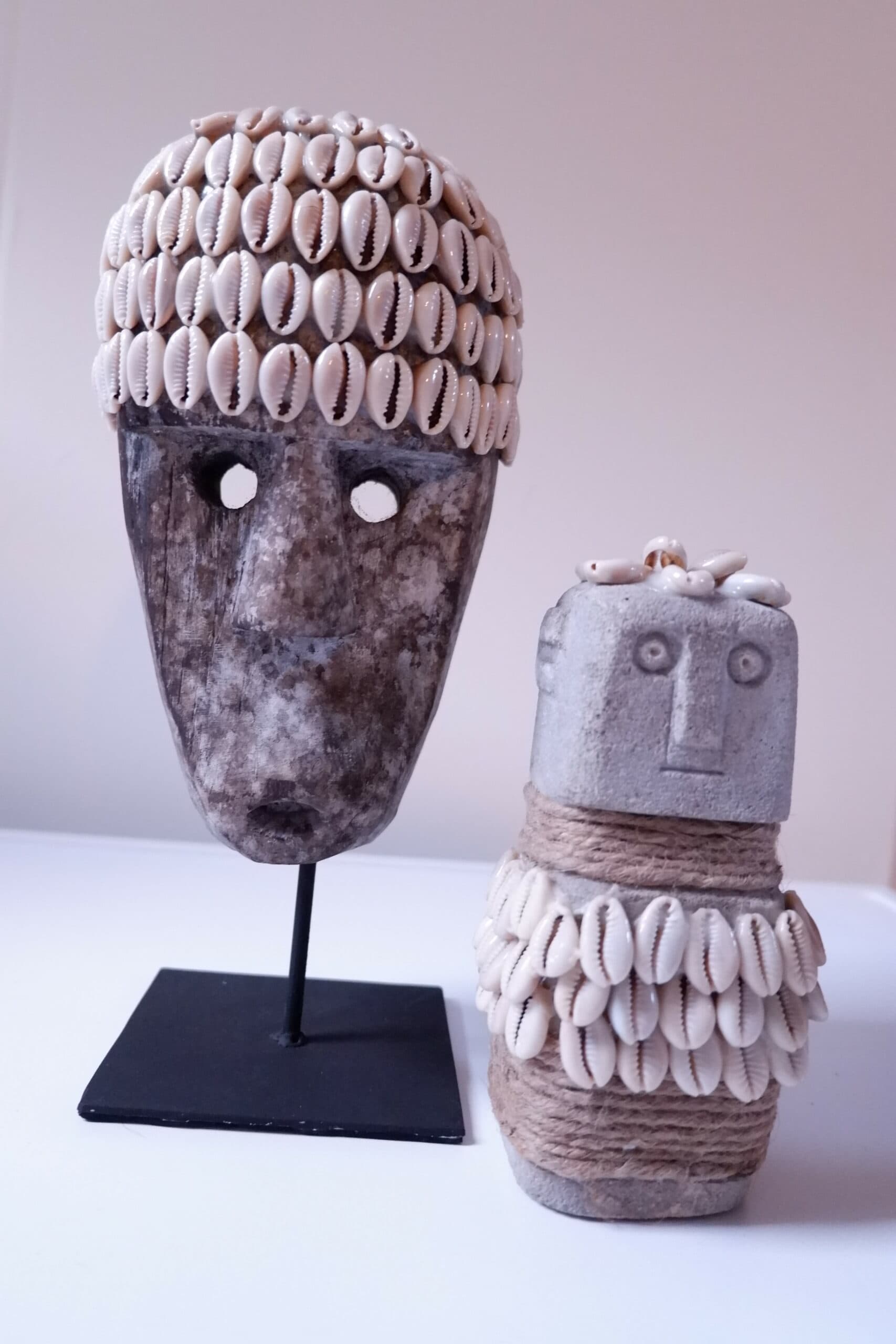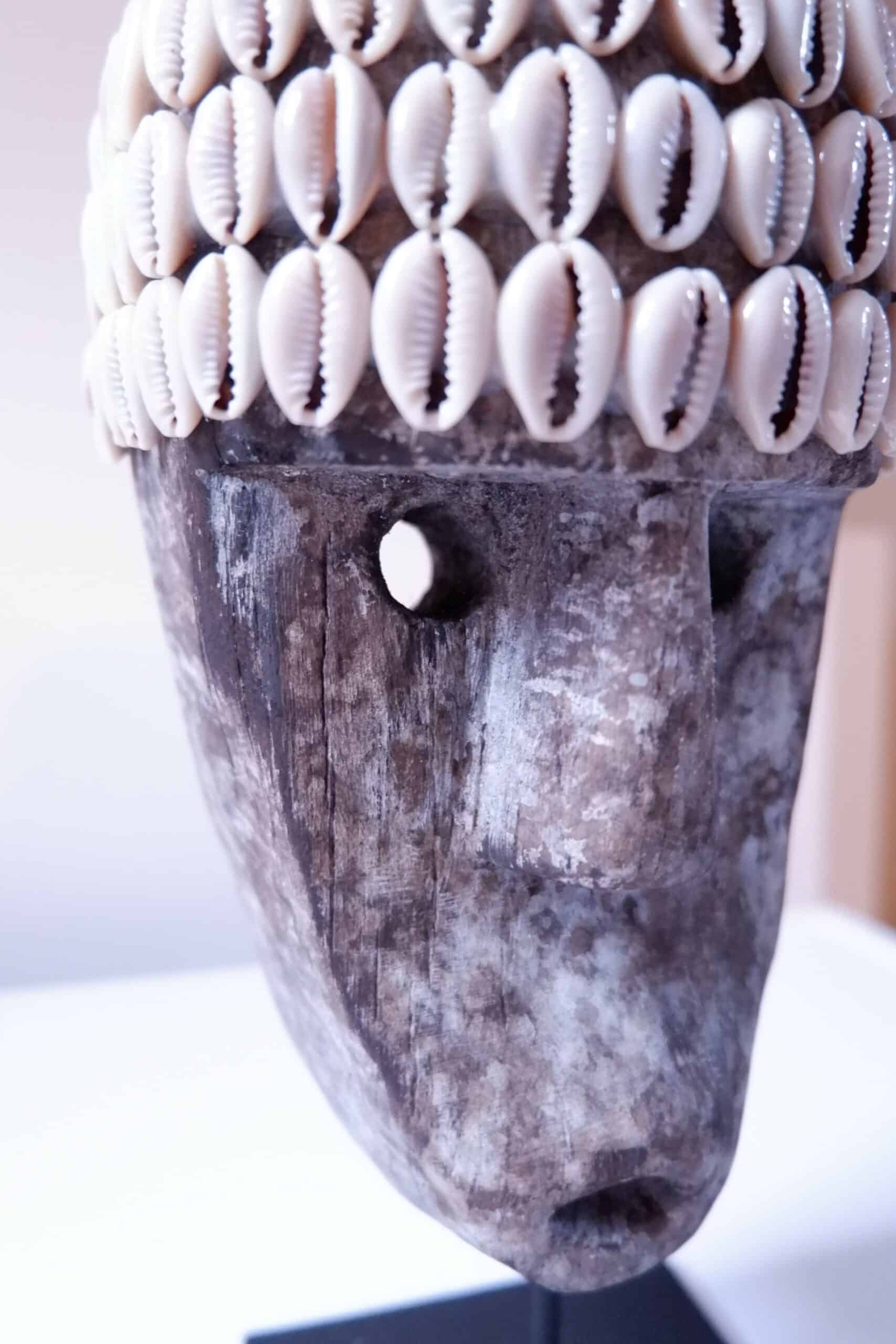 Sumba houten hoofd met schelpen op voet. Gemaakt op Bali door locale families en met veel zorg ingekocht door BYLAU
